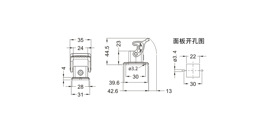 HB3A-ST-1L/C-- Кожух гнезда на панель стандартный прямой