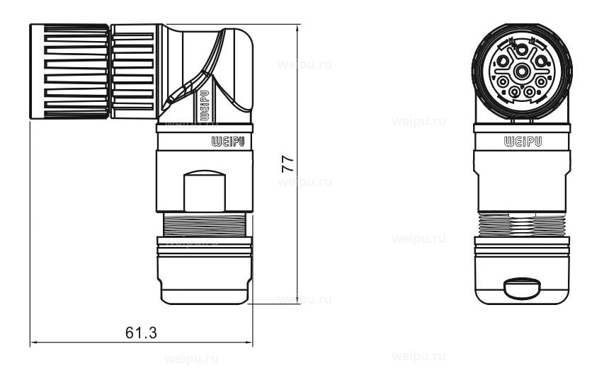M23DK6TLSIIGY Розетка кабельная экран. угловая Weipu купить с доставкой по всей России по доступным ценам | WEIPU Connector Россия