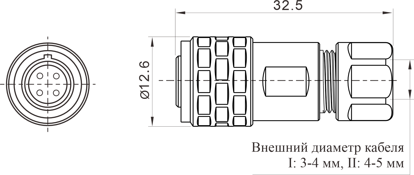 SF810B/S4I розетка кабельная, металл, push-pull, монтаж: пайка, контактов: 4 x 0,6 мм, ток: 3А, напр.: 30V, IP67, на кабель: 3-4 мм, крышка: без крышки