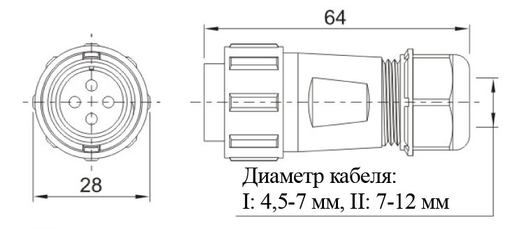 3 pin, байонет, IP67, межкабельный