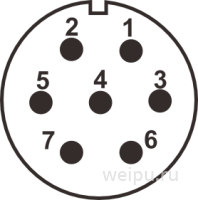WF28K7TA2 розетка кабельная, металл, резьба, монтаж: винт, контактов: 7 x 2,5 мм, ток: 25А, напр.: 500V, IP65, на кабель: 5-12 мм, крышка: без крышки