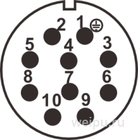 WF32K10BTA2 розетка кабельная, металл, резьба, монтаж: винт, контактов: 10B x 2,5 мм, ток: 25А, напр.: 500V, IP65, на кабель: 8,5-19,5 мм, крышка: без крышки