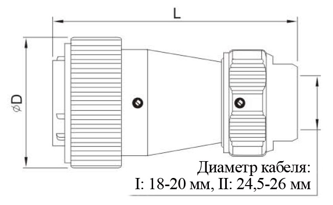 27 pin, резьба, IP65, межкабельный с механическим зажимом