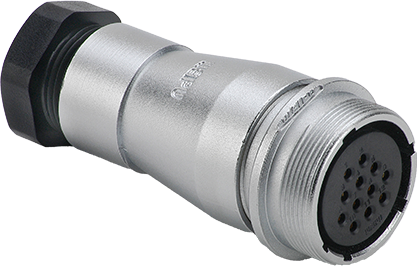 WF28K10ZA1 розетка межкабельная, металл, резьба, монтаж: пайка, контактов: 10 x 2,5 мм, ток: 25А, напр.: 500V, IP65, на кабель: 6,5-15,5 мм, крышка: без крышки