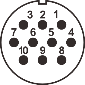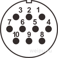 WF28K10ZI2 розетка межкабельная, металл, резьба, монтаж: винт, контактов: 10 x 2,5 мм, ток: 25А, напр.: 500V, IP65, на кабель: 8-10,5мм, крышка: без крышки