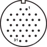 WF40K31ZA3 розетка межкабельная, металл, резьба, монтаж: обжим, контактов: 31 x 1,5 мм, ток: 10А, напр.: 500V, IP65, на кабель: 11,5-24,5 мм, крышка: без крышки
