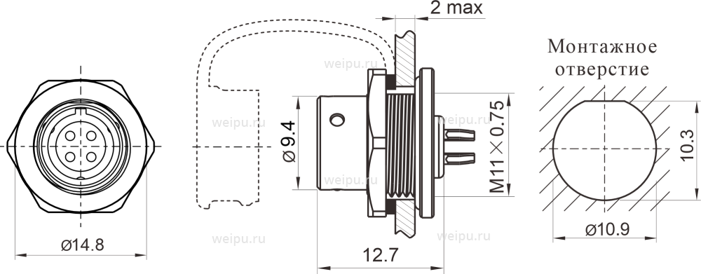| Тип товара | Розетка на панель, крепление гайкой снаружи | |