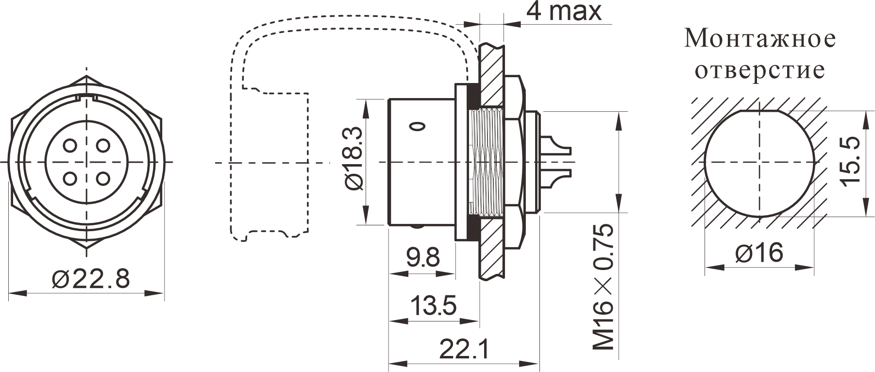Тип товара Розетка на панель, крепление гайкой