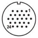 розетка на панель, крепление гайкой, пластик, резьба, монтаж: пайка, контактов: 24 x 1 мм, ток: 5А, напр.: 400V, IP68, крышка: пластик