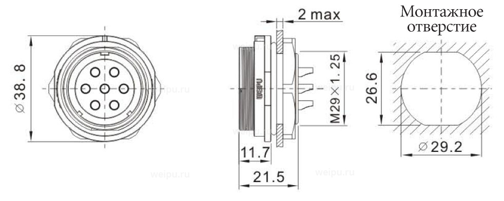 SP2912/S24C Розетка на панель, крепление гайкой Weipu купить с доставкой по всей России по доступным ценам | WEIPU Connector Россия
