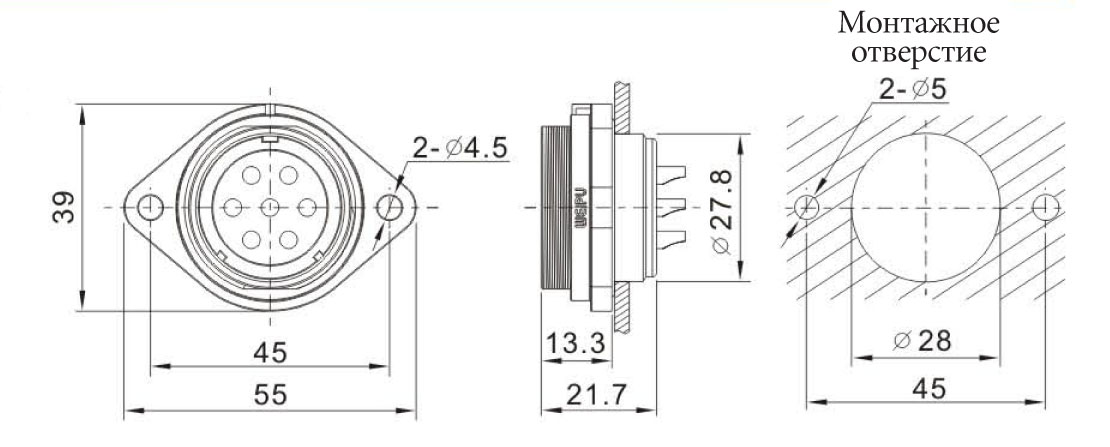 SP2913/S22C Розетка на панель с фланцем, 2 отв. Weipu купить с доставкой по всей России по доступным ценам | WEIPU Connector Россия