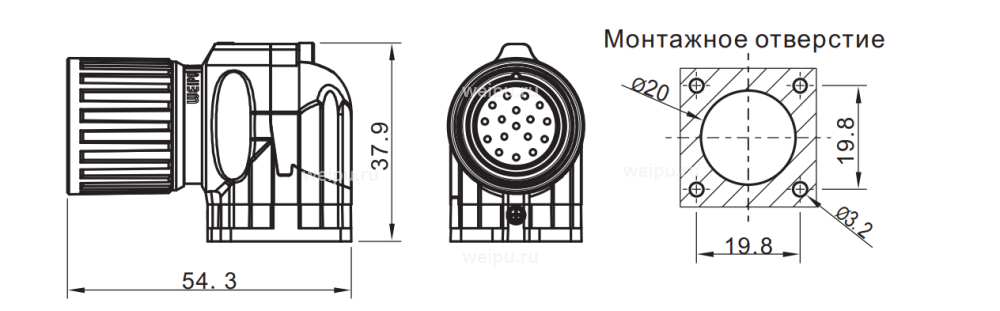 • Фото M23SJ9ZLH Вилка панельная с кв. фланцем угловая Weipu