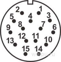 WF32K15ZG3 розетка панельная, металл, резьба, монтаж: обжим, контактов: 15 x 1,5 мм, ток: 10А, напр.: 500V, IP67, крышка: металл
