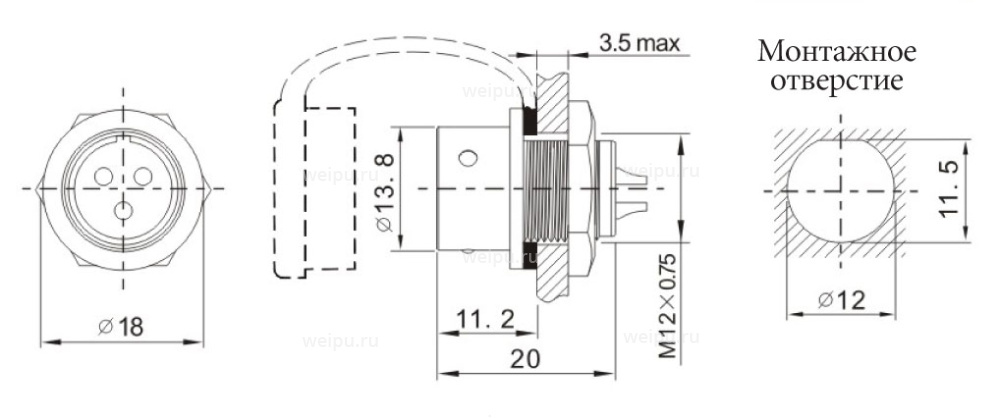 SA1212/S9S Розетка на панель, крепление гайкой Weipu купить с доставкой по всей России по доступным ценам | WEIPU Connector Россия