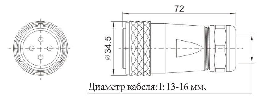 3 pin, push-pull, IP67, межкабельный