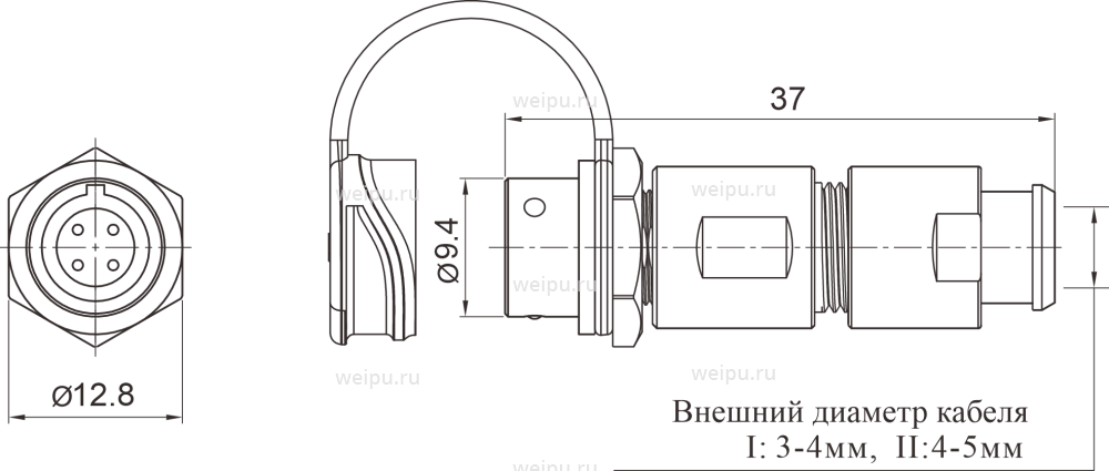 | Вид корпуса | с зажимом и защитой от перегиба | |