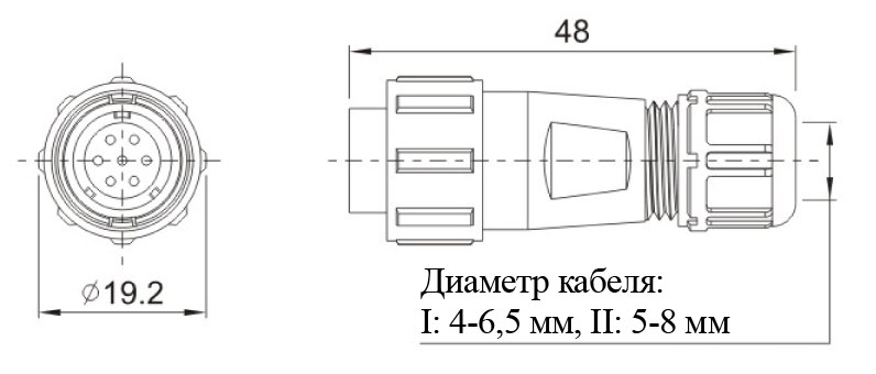 SY1310/P6I вилка кабельная, пластик, байонет, монтаж: пайка, контактов: 6 x 1 мм, ток: 5А, напр.: 125V, IP67, на кабель: 4-6,5 мм, крышка: пластик