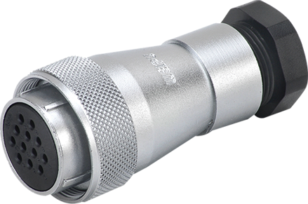 WF24J9TA3 вилка кабельная, металл, резьба, монтаж: обжим, контактов: 9 (2,5 и 1 мм), ток: 25 / 5А, напр.: 500V, IP65, на кабель: 5-12 мм, крышка: без крышки