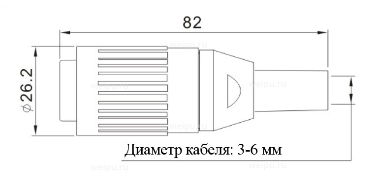 WP20J2TO1 вилка кабельная, пластик/металл, байонет, монтаж: пайка, контактов: 2 x 3 мм, ток: 30А, напр.: 500V, IP50, на кабель: 3-6 мм, крышка: без крышки