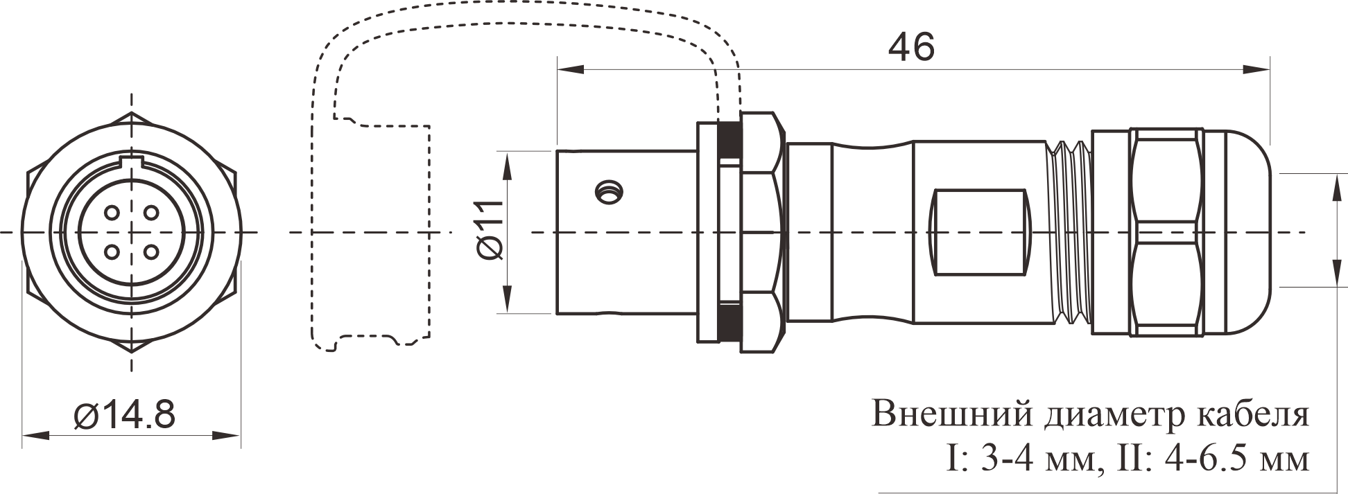 SF1011/P3II вилка межкабельная, металл, push-pull, монтаж: пайка, контактов: 3 x 1 мм, ток: 5А, напр.: 180V, IP67, на кабель: 4-6,5 мм, крышка: резиновая заглушка