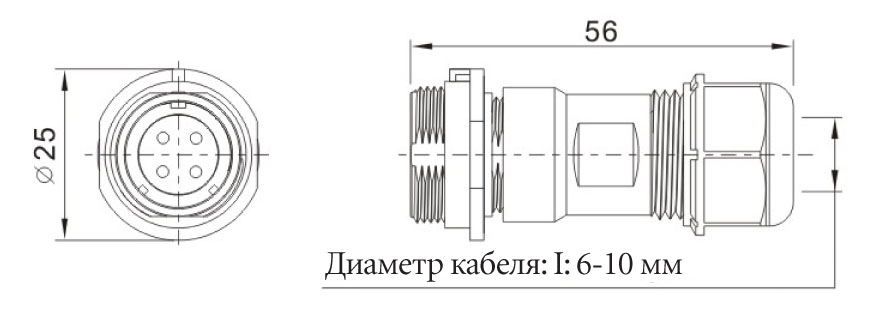 вилка межкабельная, пластик, резьба, монтаж: пайка, контактов: 3 x 1,5 мм, ток: 10А, напр.: 500V, IP68, на кабель: 6-10 мм, крышка: пластик