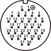31 pin, резьба, IP65, кабельный с механическим зажимом