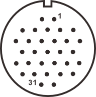 WF40J31ZA3 вилка межкабельная, металл, резьба, монтаж: обжим, контактов: 31 x 1,5 мм, ток: 10А, напр.: 500V, IP65, на кабель: 11,5-24,5 мм, крышка: без крышки