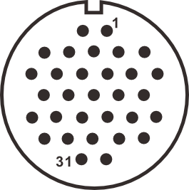 WF48J31ZI-I3 вилка межкабельная, металл, резьба, монтаж: обжим, контактов: 31 x 2,5 мм, ток: 25А, напр.: 500V, IP65, на кабель: 15,5-18,8 мм, крышка: без крышки