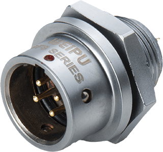 SF812B/P4 вилка на панель, крепление гайкой, металл, push-pull, монтаж: пайка, контактов: 4 x 0,6 мм, ток: 3А, напр.: 30V, IP67, крышка: резиновая заглушка