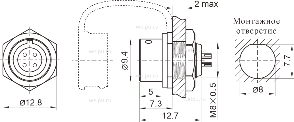 | Тип товара | Вилка на панель, крепление гайкой | |