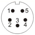 ST1212/P5 вилка на панель, крепление гайкой, металл, резьба, монтаж: пайка, контактов: 5 x 1 мм, ток: 5А, напр.: 180V, IP67, крышка: резиновая заглушка