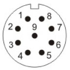 SY1312/P9С вилка на панель, крепление гайкой, пластик, байонет, монтаж: пайка, контактов: 9 x 0,7 мм, ток: 3А, напр.: 125V, IP67, крышка: пластик