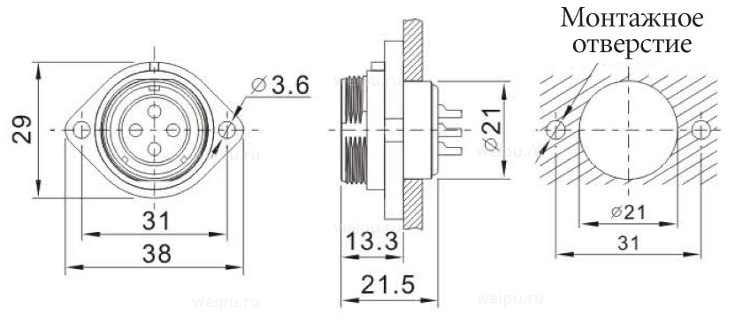 SP2113/P3C Вилка на панель с фланцем, 2 отв. Weipu купить с доставкой по всей России по доступным ценам | WEIPU Connector Россия