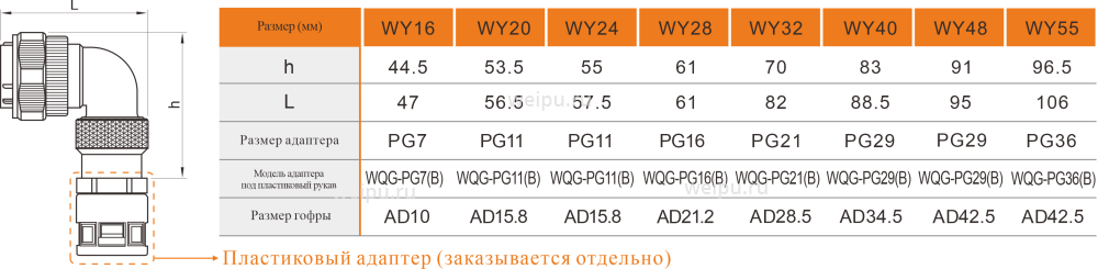 | Вид корпуса | угловой с адаптером под пластиковый рукав | |