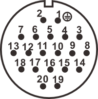 20 pin, резьба, кабельный c угловым хвостовиком и гайкой с механическим зажимом